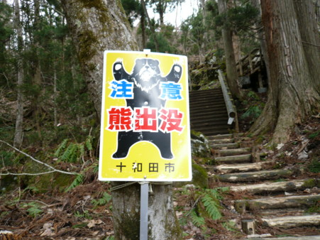 クマ注意の看板とこの奥に占場なる場所があるって看板がありました。